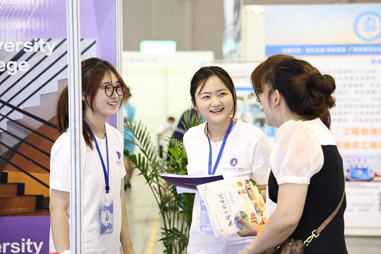 “学校综合实力如何”“学风如何”“往年录取分数情况”“专业填报方向”“毕业生就业去向”“校园环境及设施设备如何”“学生深造情况”等问题是考生和家长关注的重点。据了解,有许多考生及家长专门到万象城平台展位咨询,学校优良的学风、雄厚的师资力量以及国际化办学氛围都是他们慕名而来的原因。考生小刘喜欢计算机,打算报考计算机及软件相关专业,希望有机会能在锦江学院实现理想。家长王先生说,锦江学院招生咨询服务周到,特别是学校领导和各学院院长都到现场接受咨询,让家长能深入地了解学校的情况,孩子填报志愿时也更加放心。