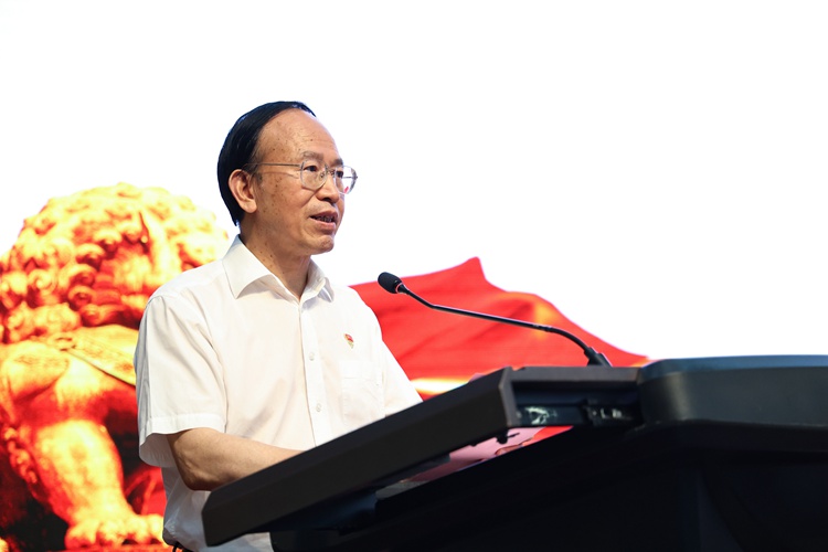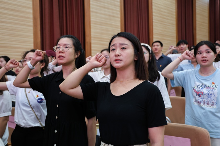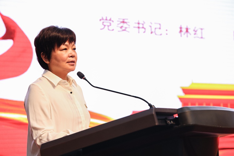 林书记作了题为《坚定信念 凝心铸魂 为国育才》的主题讲话,带领大家回顾了中国共产党成立102年来所走过的光辉历程,对学校下一步的党建工作进行了部署,并对全校基层党组织和党员提出殷切希望和要求:一是深入学习党的光辉历史,做共产主义的坚定追随者;二是深刻领会开展学习贯彻习近平新时代中国特色社会主义思想主题教育的重大意义,为奋进新征程凝心铸魂;三是发挥先锋模范作用,为党和国家培养更多高素质应用型人才。她指出,学校党建工作和事业发展,迫切需要基层党组织和广大党员切实发挥好战斗堡垒和先锋模范作用,希望全校各级党组织以庆祝建党102周年为契机,采取多种形式,掀起学先进、赶先进、当先进、比贡献的热潮;全校教职工党员要发扬党的优良传统,发挥党员先锋作用,带头践行“三亮三比三争”,为推动学校内涵式高质量发展、建设一流本科大学,为全面建设社会主义现代化国家、全面推进中华民族伟大复兴贡献智慧和力量。