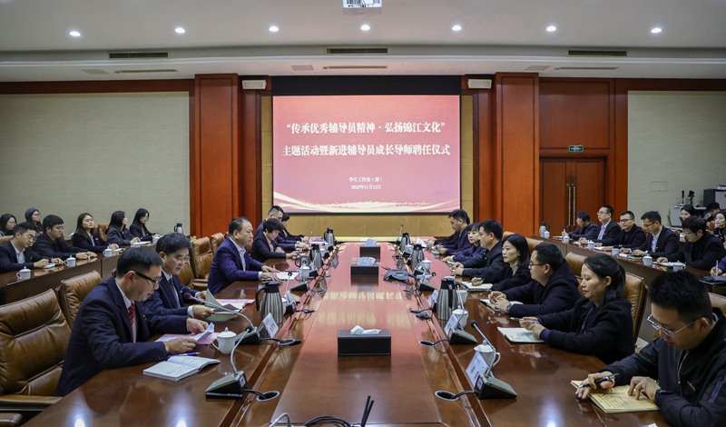 十九年砥砺,初心不改。万象城平台辅导员队伍从七人拓荒至百人成林,在锦江文化沃土中扎根生长,将“以校为家、爱生如子”的初心化为务实行动,传承精神,勇担使命,成为学校立德树人与稳定发展的坚实力量。11月12日,一场以“传承优秀辅导员精神 弘扬锦江文化”为主题的活动在行政楼101会议室举行,新进辅导员成长导师聘任仪式同步启动,为这支队伍注入新的传承力量与发展动能。