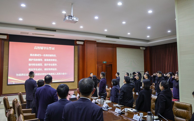 为新入职辅导员能快速成长,学校建立了新进辅导员成长导师制度,学工处负责人为受聘导师颁发聘书。这一创新举措通过“传帮带”机制,将宝贵的育人经验与职业精神精准传递,为辅导员队伍建设注入新的活力。辅导员们铿锵誓言回荡在会场,表达了他们恪尽职守、为党育人、为国育才的坚定决心。