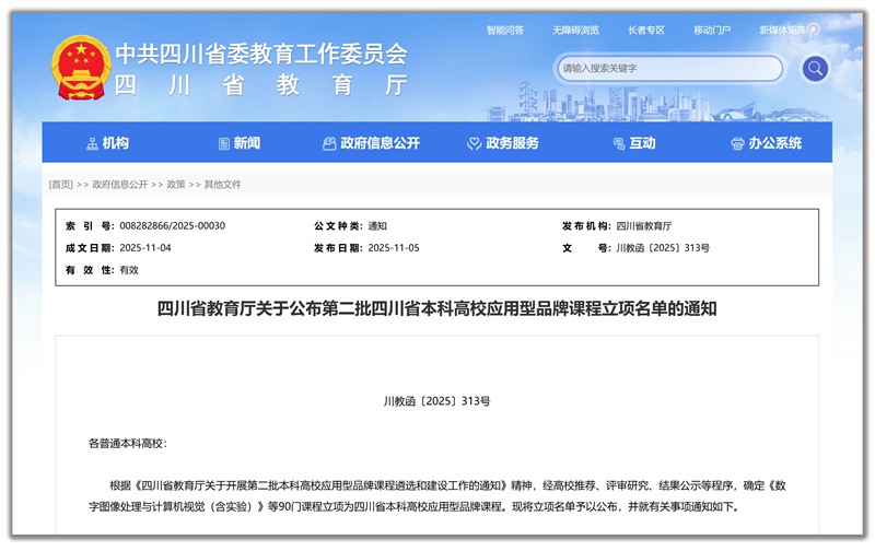 近日,四川省教育厅发布《关于公布第二批四川省本科高校应用型品牌课程立项名单的通知》,我校《商务与经济统计》《机械制造技术基础》两门课程凭借鲜明的应用型特色成功立项,标志着学校课程质量建设再上新台阶。