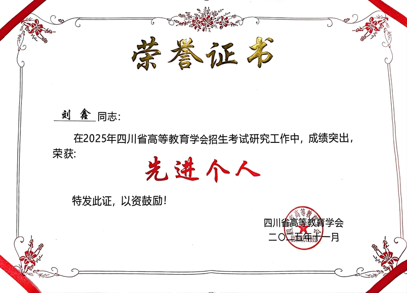 11月21日,四川省高等教育学会招生考试研究专业委员会2025年总结年会暨招生考试改革研讨会议召开。我校再次被授予“四川省普通高等学校招生考试研究工作先进单位”荣誉称号,招生就业处刘鑫获“四川省普通高等学校招生考试研究工作先进个人”荣誉称号。