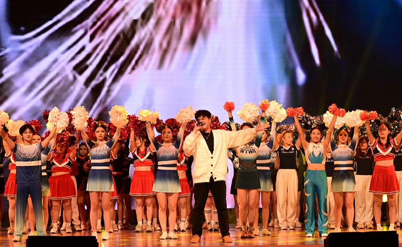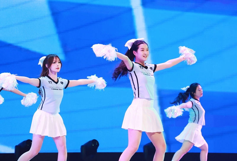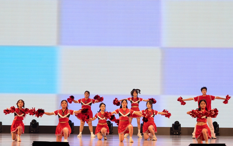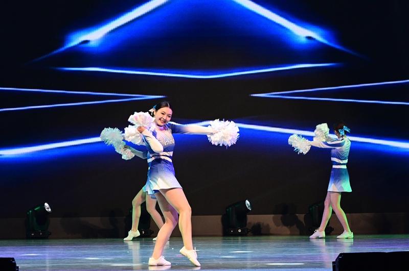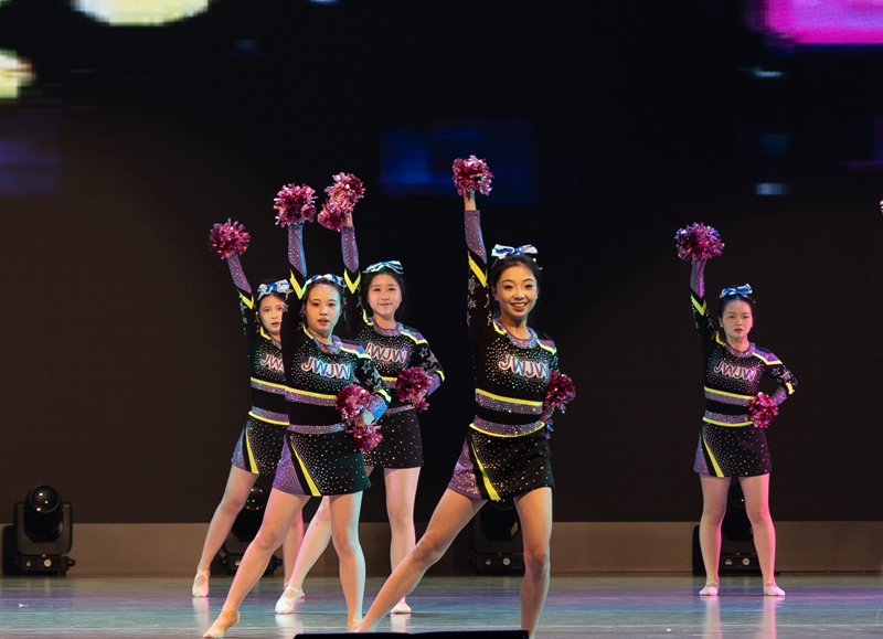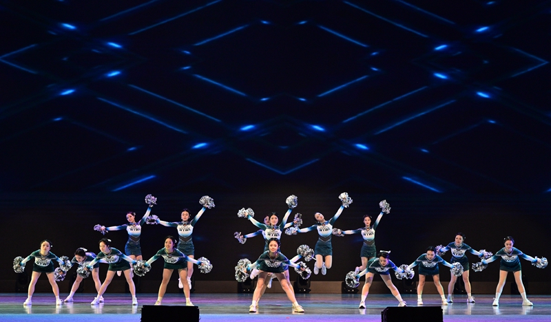 比赛现场,灯光璀璨、花球闪亮,各参赛队精神饱满,“舞”力全开。参赛队员们伸臂舒展有力、踢腿干脆利落、旋转轻盈灵动、跳跃活力迸发……动作衔接行云流水,尽显青春朝气;托举紧密协作、人塔稳固挺拔、空翻灵活潇洒、抛接精准无误……多项高难度技巧动作接连上演,精彩纷呈。一个个充满创意与活力的啦啦操表演引得观众掌声与喝彩此起彼伏。互动环节更是进一步点燃全场热情,将现场气氛一次次推向高潮。